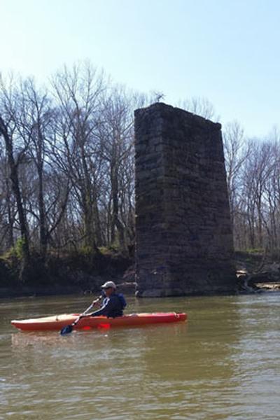 About halfway through the trip are three impressive stone piers from the Milton & Sutherlin Narrow Gauge Railroad, built in 1878 to connect Milton to the Richmond & Danville Railroad. Kirkpatrick muses, “In early American history, our rivers were key to community development, serving as our highways. During the 19th century they were replaced by rail lines, such as the Richmond & Danville and the Milton & Sutherlin railroads. Today, our rivers are serving as recreational highways, recapturing some of the past history as integral to community quality of life.”